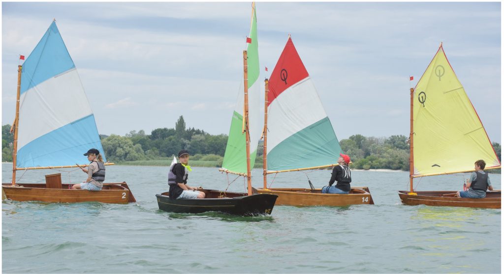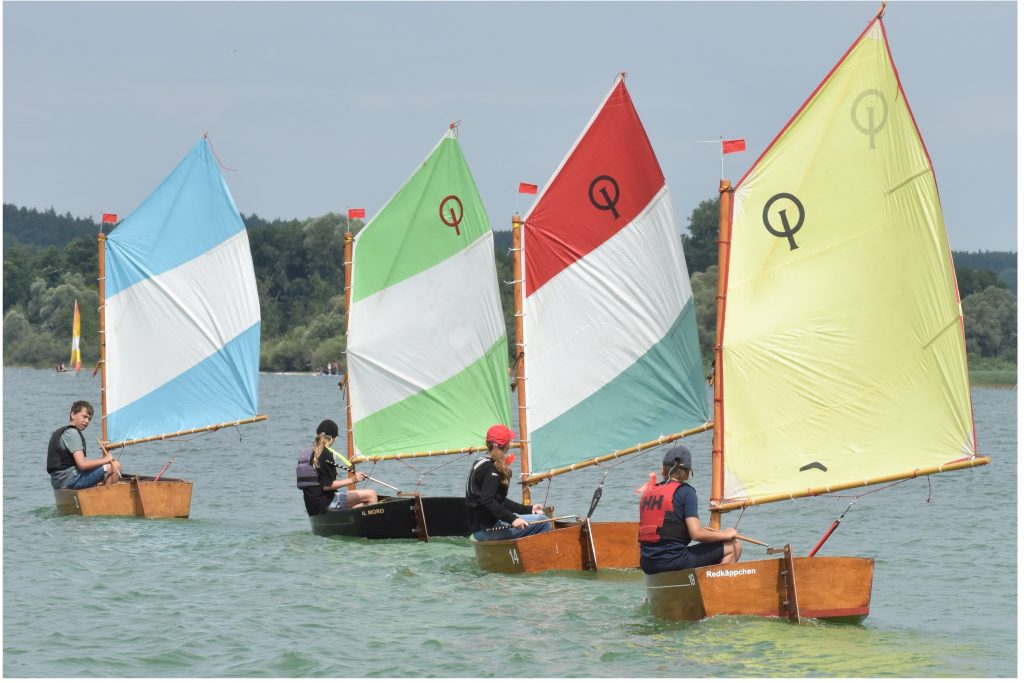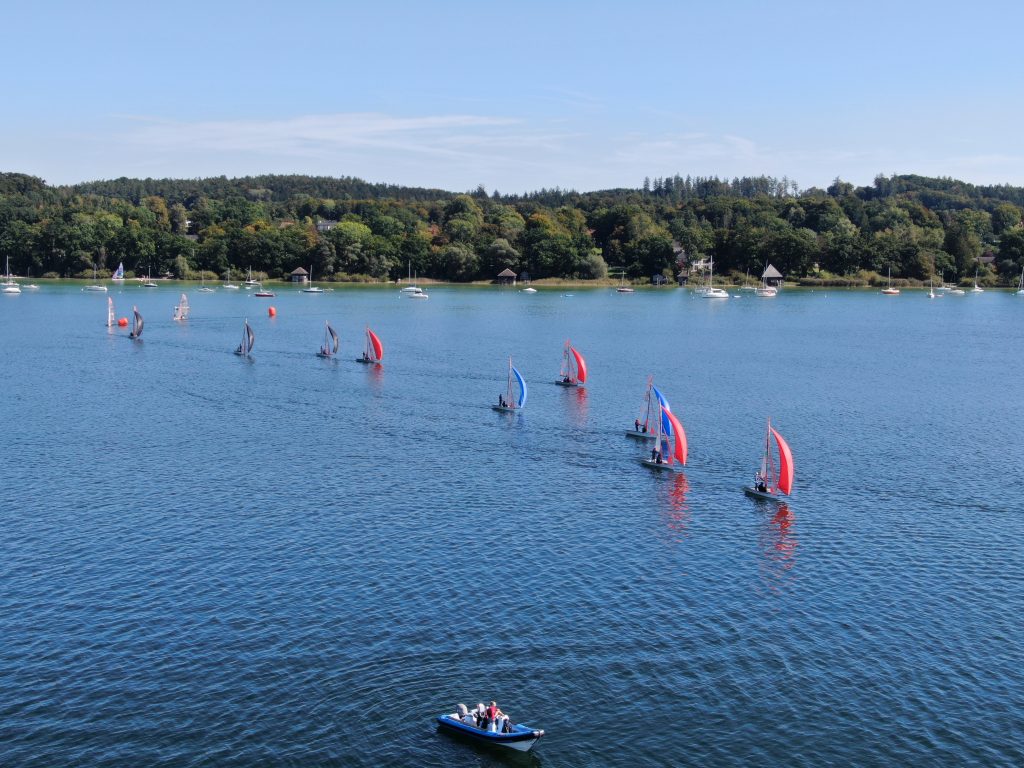 Lange stand ferienbedingt das Zustandekommen der Ranglistenregatta mit Faktor 1,2 auf der Kippe, bis am Ende beachtliche 18 Boote am Start waren. Das spätsommerliche Wochenende glänzte am Samstag mit Sonnenschein und fast 30°C, das Seewasser noch mit angenehmen 18°C, also perfekt zum Baden – nur leider gänzlich ohne Wind. Die jungen Segler hatten aber trotzdem großen Spaß; sie legten ihre digitalen Endgeräte zur Seite und genossen den Tag gemeinsam mit Ball-Wettbewerben, Kartenspielen und Baden im See. Abends konnten sich alle am legendären Chili con und sin Carne sattessen, dazu eisgekühlte alkoholfreie Cocktails schlürfen und den Tag direkt am Ufer unter dem klaren Sternenhimmel an der Feuerschale ausklingen lassen.