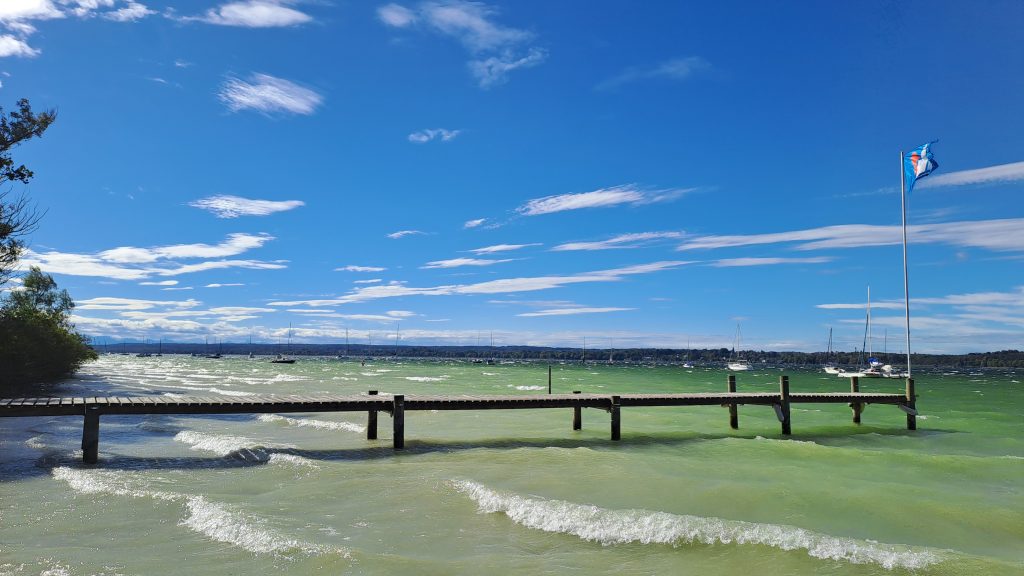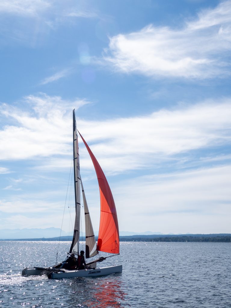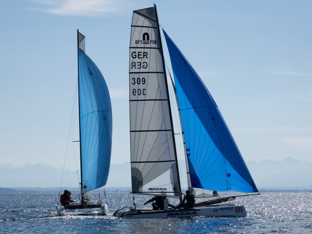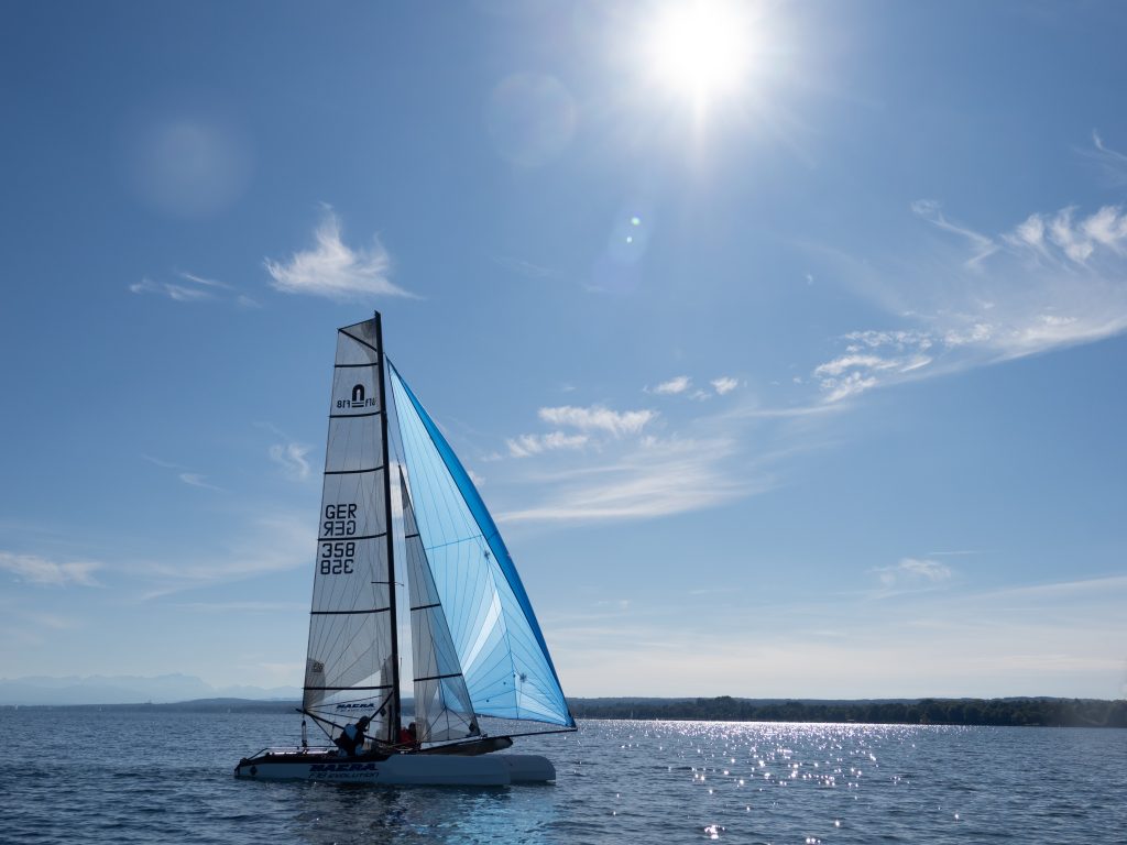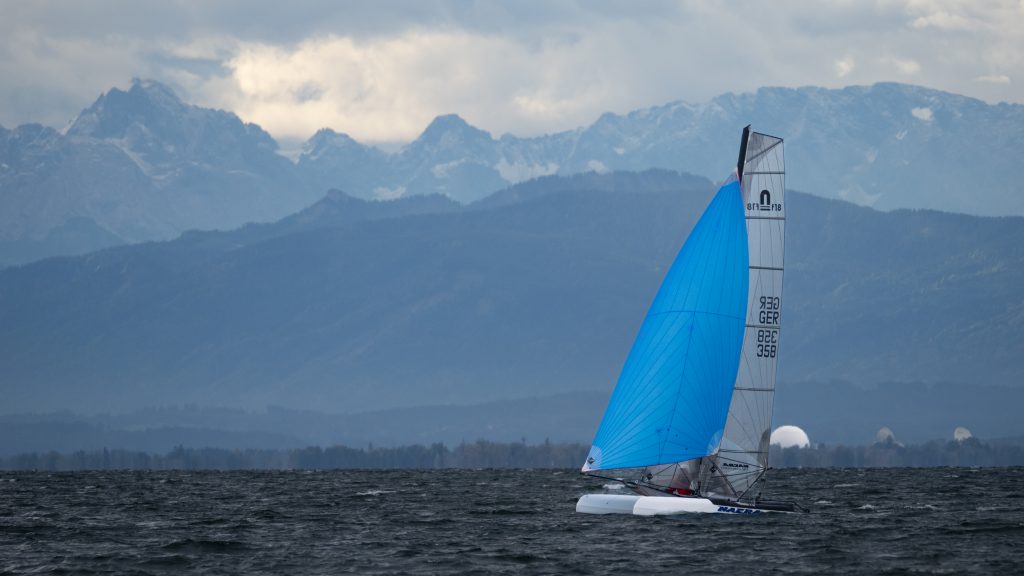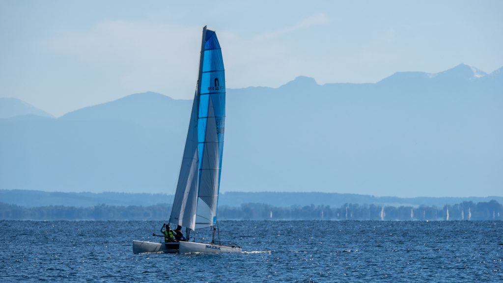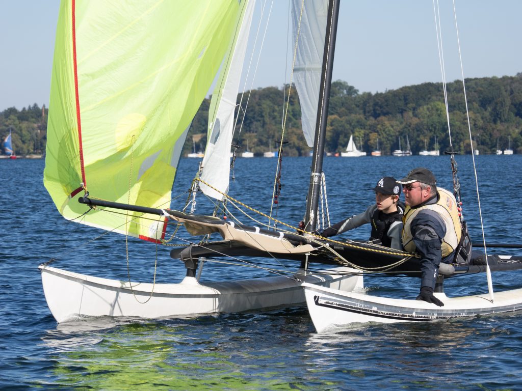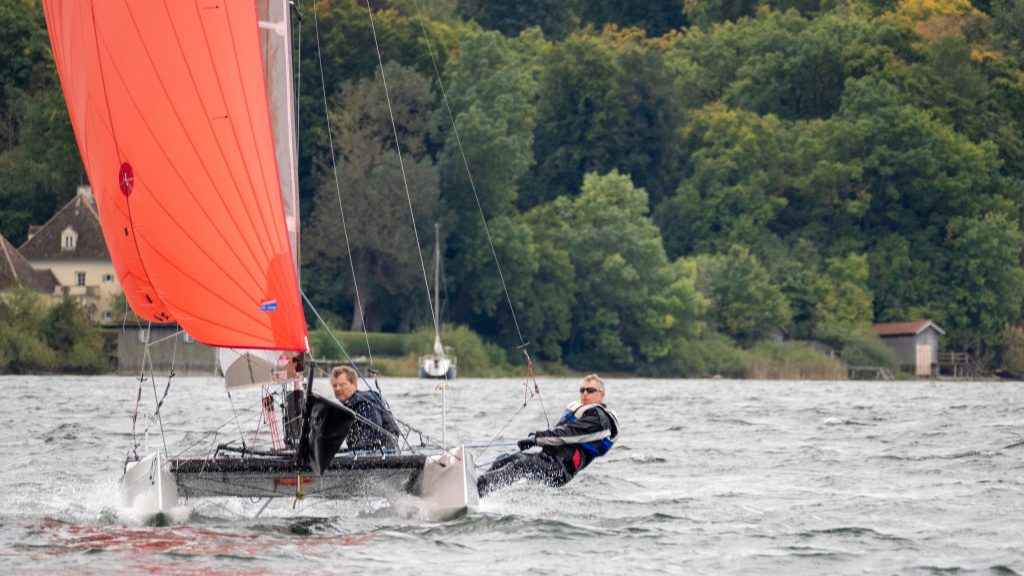 Alle Jahre wieder ist es soweit. Wies’n-Zeit ist Regattazeit im SCIA. Unsere traditionelle Katamaran-Regatta fand dieses Jahr am letzten Wies’n-Wochenende statt, zeitgleich zum Tag der Deutschen Einheit. Wir durften Gäste aus den benachbarten bayerischen Clubs begrüßen, und selbst aus Sachsen-Anhalt hat sich eine Crew auf den Weg zum Ammersee gemacht. Einige Teilnehmer und Helfer mussten wegen einer heftigen Erkältungswelle absagen, es ist halt Wies’n-Zeit. Aber wir bekamen 10 Boote an die Startlinie und konnten die Regatta fahren, auch dank der verlässlichen Helfer des SCIA. Es war eine Regatta vor dem Sturm, denn im Laufe des zweiten Tages war eine aufziehende Kaltfront mit heftigem Wind angekündigt.