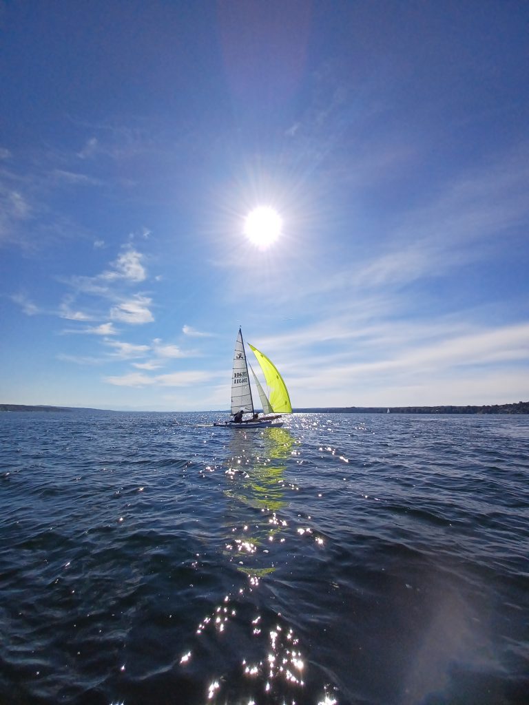 Ein gelungener Saisonabschluss war unser Espresso Race an diesem schönen Sonntag. 10 Boote fanden sich ein zum Start bei bestem Sonnenschein mit Zugspitzblick und glitzerndem Wasser. Darunter auch viele Gäste von anderen Clubs am See, die wir herzlich willkommen geheißen haben. Unter der souveränen Wettfahrtleitung von Jochen Blumenauer wurde nach der Steuerleutebespechung nicht lange gezögert, denn es wehte ein seltener konstanter Südwind. Der trug uns über zwei Wettfahrten und ließ erst zum Ende hin leichte Schwächen erkennen. Wie immer beim Espresso Race gab es an Land Kaffee und Kuchen, gefolgt von einer unterhaltsamen Siegerehrung unter Mitwirkung aller Beteiligten. Sieger wurde die Crew um Theodoro Rombauer vom AYC.