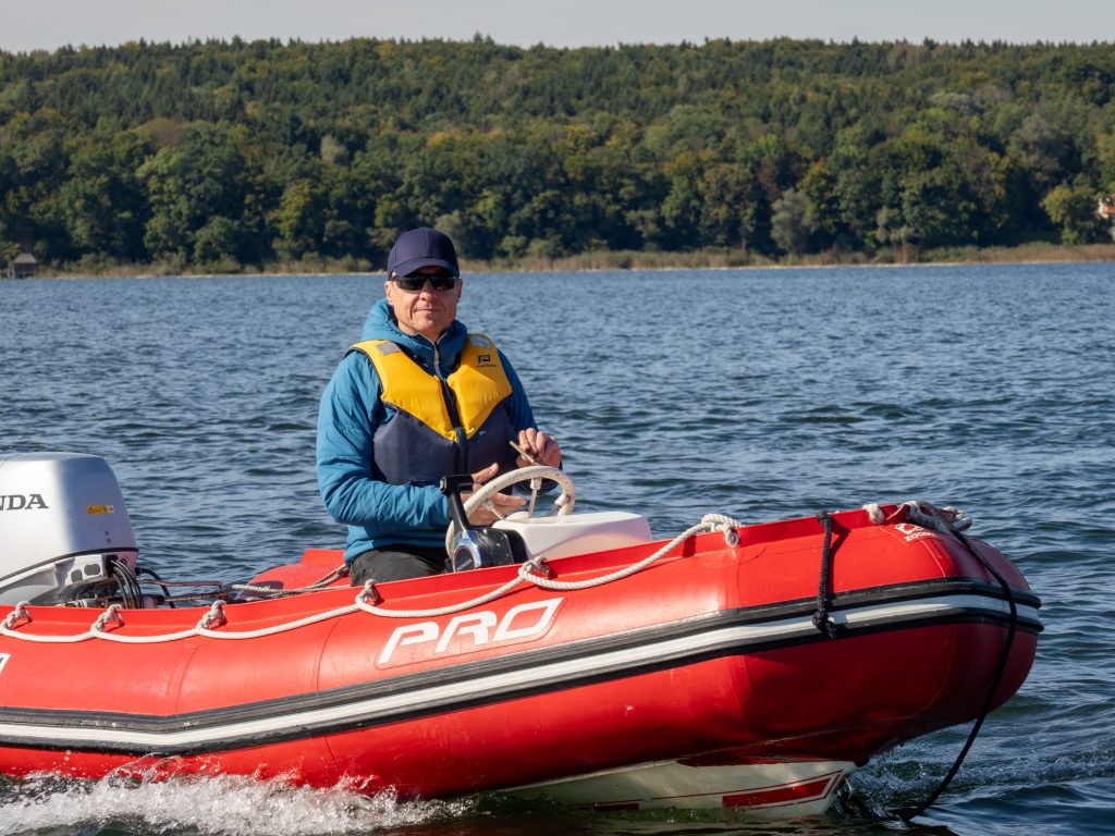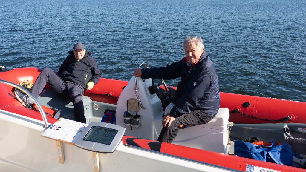 Das Beste gleich am Anfang, zwei Traumtage waren das, bestes Regatta-Segler Wetter. Der Helfer-Job gestaltet sich in der Regel immer gleich, Equipment zusammenstellen, Boote fertig machen und raus aufs Wasser … wenn nicht, wie es vorkommen kann, irgendwas schiefläuft. Tank leer, Batterien leer, Gerät zum Aufpusten der Tonnen leer, oder die Tonne hält die Luft nicht … der Phantasie sind keine Grenzen gesetzt. Gottlob sind ideenreiche und anpackende Frauen und Männer im SCIA versammelt und da heißt es: „Es gibt keine Probleme, nur Herausforderungen an denen wir wachsen“. Da verzweifeln wir auch nicht an einem gerissenen Steuerdraht unseres Bojen-Leger Bootes „Sir Hans“. Kunstvoll ein Paddel montiert und mit guter Handsteuerung geht das schon.
