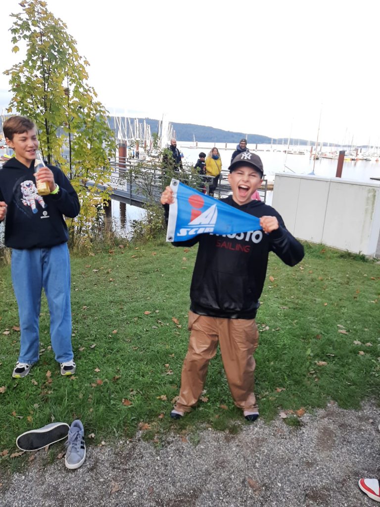 In der Mannschaftswertung hatte Team „Orange“ mit 41 Punkten die Nase vorn, gefolgt von Team „Gelb“ mit 47 Punkten. Die mit einer Regatta-Uhr dotierte Einzelwertung holte sich Andreas Baur vom Tegernsee, vor Laurin und Johanna aus dem SCIA. Weil ein A-Segler vom Tegernsee meist schon genügend Regattauhren auf Lager hat, gab Andreas seinen Preis an den noch uhrlosen Mattis aus Inning weiter und erhielt als Belohnung für seine Großherzigkeit ein wirkungsvolles Instrument zum Fernhalten seiner Eltern. Das beste und das jüngste Mädchen wurden jeweils mit einem Sonderpreis geehrt.