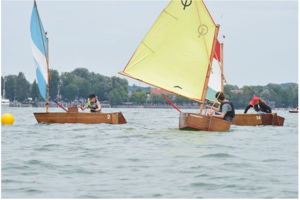 Die bauartbedingten Unterschiede in der Bootsgeschwindigkeit wurden durch regelmäßigen Mannschaftswechsel weitgehend ausgeglichen. Anfangs mussten sich die Teilnehmer allerdings noch an das „andere“ Gefühl einem Holz-Opti gewöhnen. Dann aber zeigte sich erneut, dass es am Boot eben ich „liegt“ und man konnte bei allen Seglern eine steile Lernkurve beobachten. Dabei ging sehr diszipliniert zu und fast zu vorsichtig mit den Booten, was einen Schiedsrichter beinahe überflüssig machte. Den Rest erzählen die Bilder.