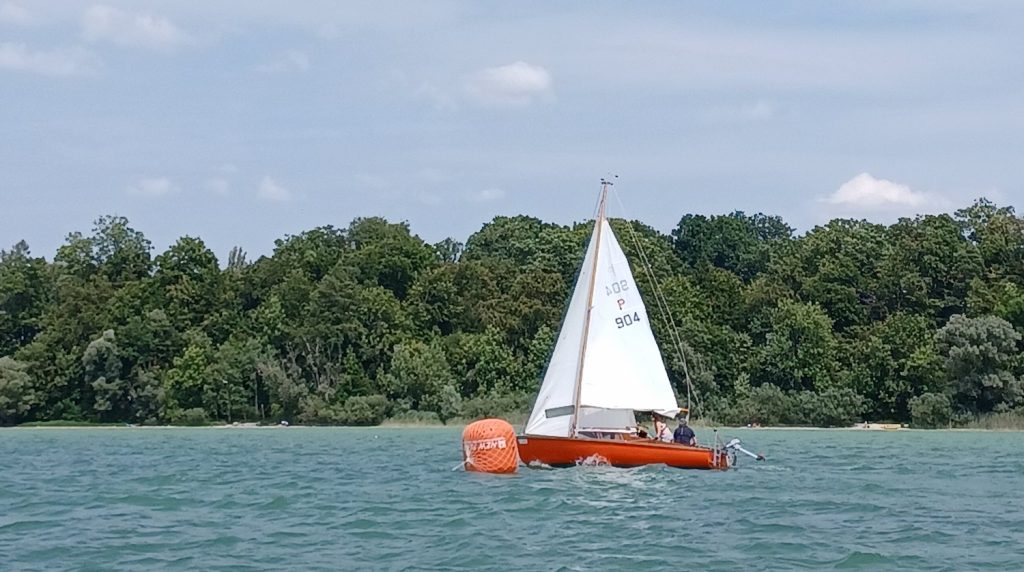 Für alle die Lust hatten, führte ich spontan ein Starkwindtraining mit Theorie und Video an Land, und anschließend auf dem Wasser durch. Wir hatten zwei Optis auf dem Wasser. Die Kids konnten zusammen mit ihren Trainern*Innen vom Mobo zuschauen und die Mutigen im Wechsel auf den Opti umsteigen. Alle hatten dabei richtig Spaß und eine Menge gelernt.