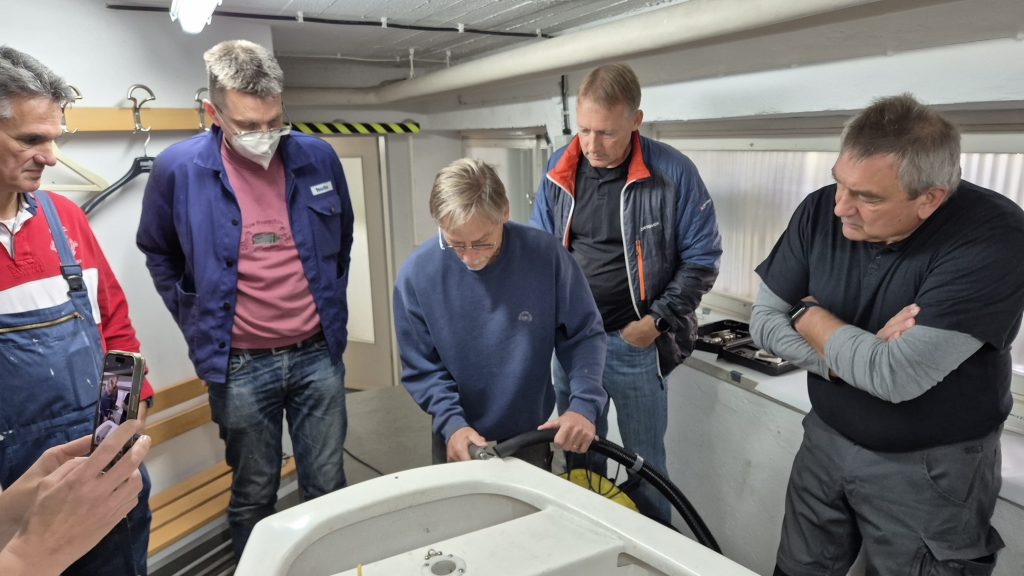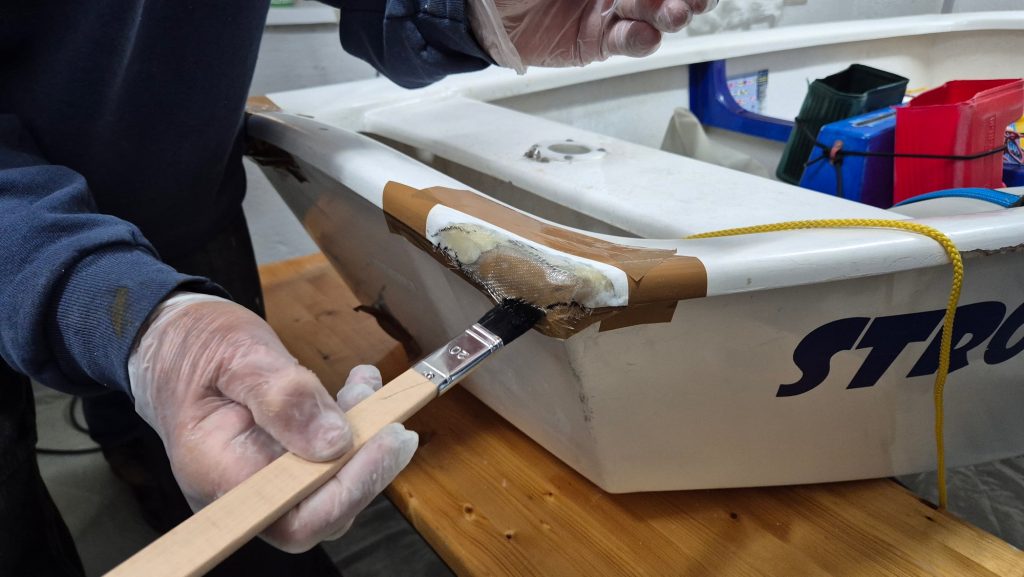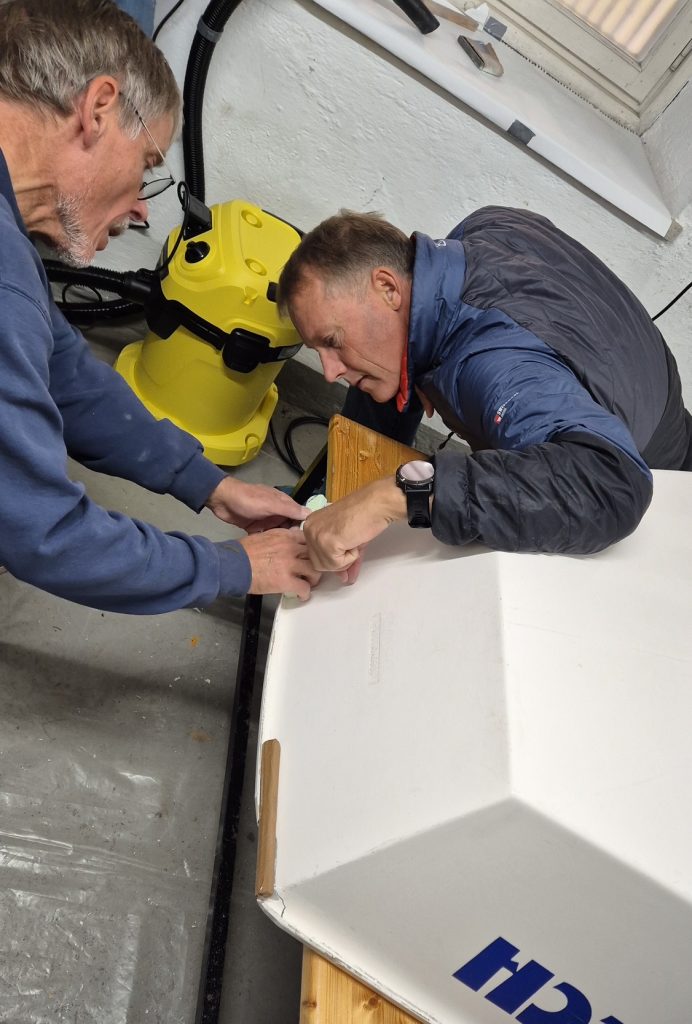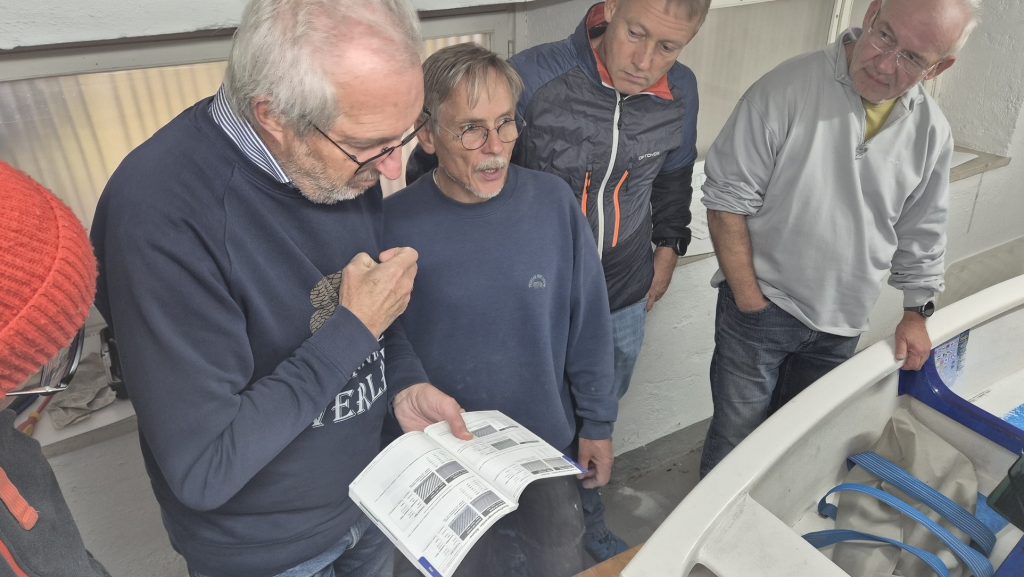 Köpergewebe, Polyester, Styrol, Epoxy, Silan, Topfzeit und viele weitere Fachbegriffe, die nicht für jeden sofort verständlich sind. Wolfgang Huber vom SCIA führte am 25.10. während eines GFK-Workshops 10 Teilnehmer in die Welt der Werkstoffe und Bootsreparatur ein. Mit viel Fachwissen und Begeisterung. In einer gelungenen Mischung aus Theorie und Praxis erfuhren die Teilnehmer, worauf es beim Laminieren und Reparieren von GFK-Schäden ankommt. Angewandt wurde das Erlernte umgehend an unserem Club-Opti Strolch, der deutlichen Bedarf an entsprechenden Reparaturen hatte. Am Ende waren sich alle einig: ein toller Workshop, der nicht nur Wissen vermittelte, sondern auch richtig Spaß gemacht hat. Herzlichen Dank an Wolfgang Huber für die Vorbereitung und praxisnahe Durchführung.