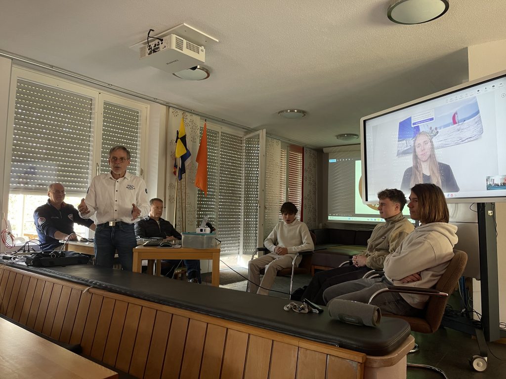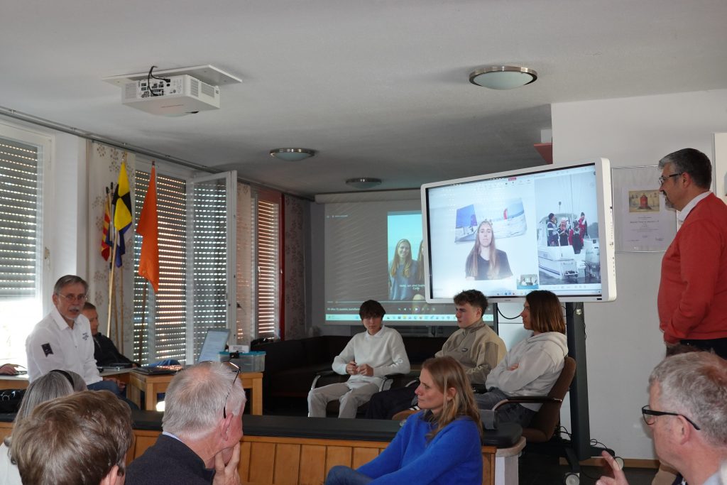 Die jungen Segler erzählten über ihre Werdegänge und Motivation, die sie von den ersten Erfahrungen im Opti bis zu internationalen Regatten gebracht haben. Spannende und amüsante Schilderungen gab es zu hören. Aber auch andere Aspekte wurden diskutiert, wie der hohe Stellenwert der elterlichen Unterstützung und die aufwändige Akquise von Sponsorengeldern. Das Round Table-Gespräch wurde multimedial angereichert durch Video- und Fotomaterial von den ersten Übungseinheiten der Anfänger-Gruppe im SCIA bis zu offiziellen Mitschnitten von internationalen Regatten. Zur Pause gab es ein unterhaltsames Online-Quiz mit Fragen zu besonderen Anekdoten aus dem jugendlichen Seglerleben. Und als Überraschung überreichte Clubpräsident Wolfgang Willner einen Scheck zur finanziellen Unterstützung der 49er FX Crew Sophie Steinlein/Catherine Bartelheimer.