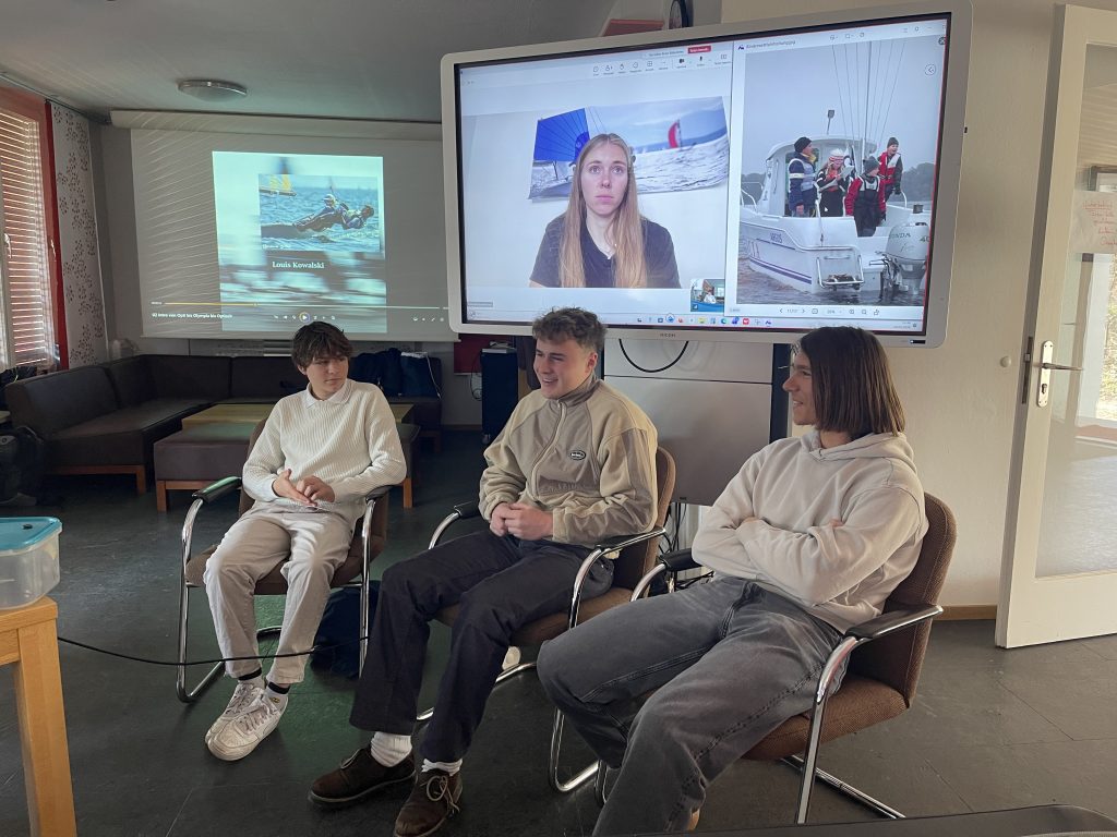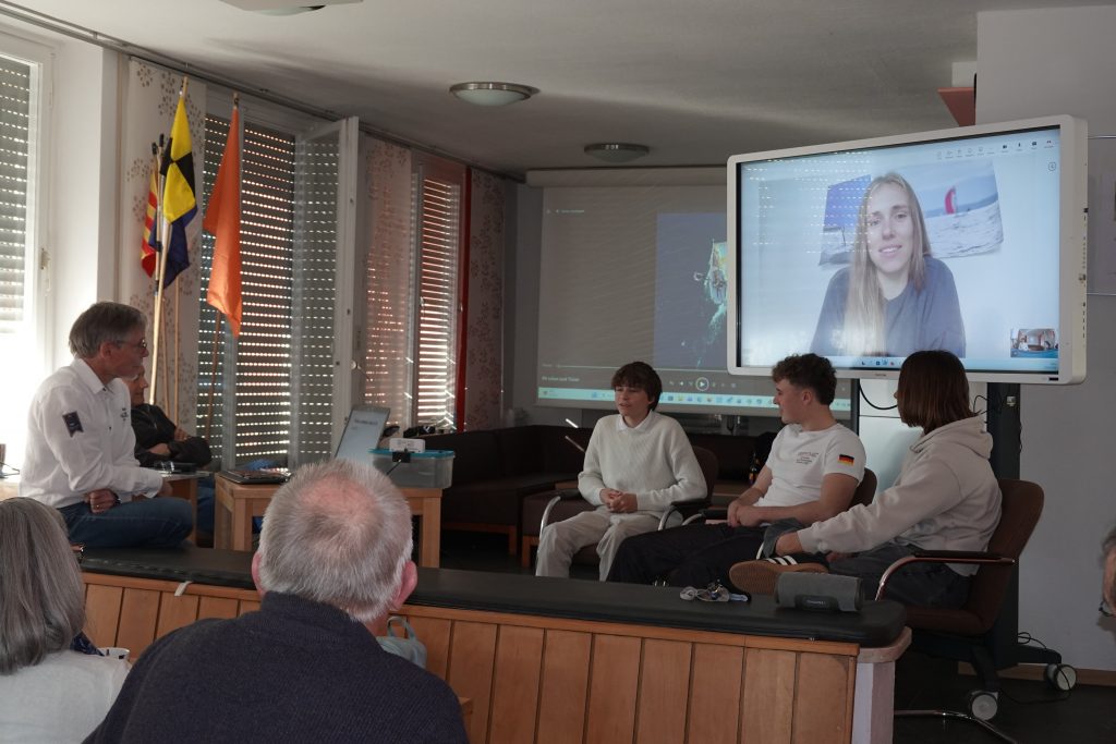 Prächtiges Frühlingswetter begleitete unsere neueste Ausgabe des SCIA Kaffeeklatsch am 22. März 2026. Fast 30 Zuhörer fanden sich im SCIA ein, um einer Talk-Runde zum Thema “Von Opti bis Olympia. Die SCIA-Jugend im Leistungssport” beizuwohnen, darunter auch Kinder im Opti-Alter. Wolfgang Huber moderierte die kurzweilige Gesprächsrunde mit den 29er Kaderseglern Julian und Tizian Lembeck sowie Louis Kowalski. Aus Kiel war über Video Catherine Bartelheimer zugeschaltet, die nach ihren ersten Segeljahren am Ammersee ihre zweite Olympia-Kampagne im 49er FX fährt.